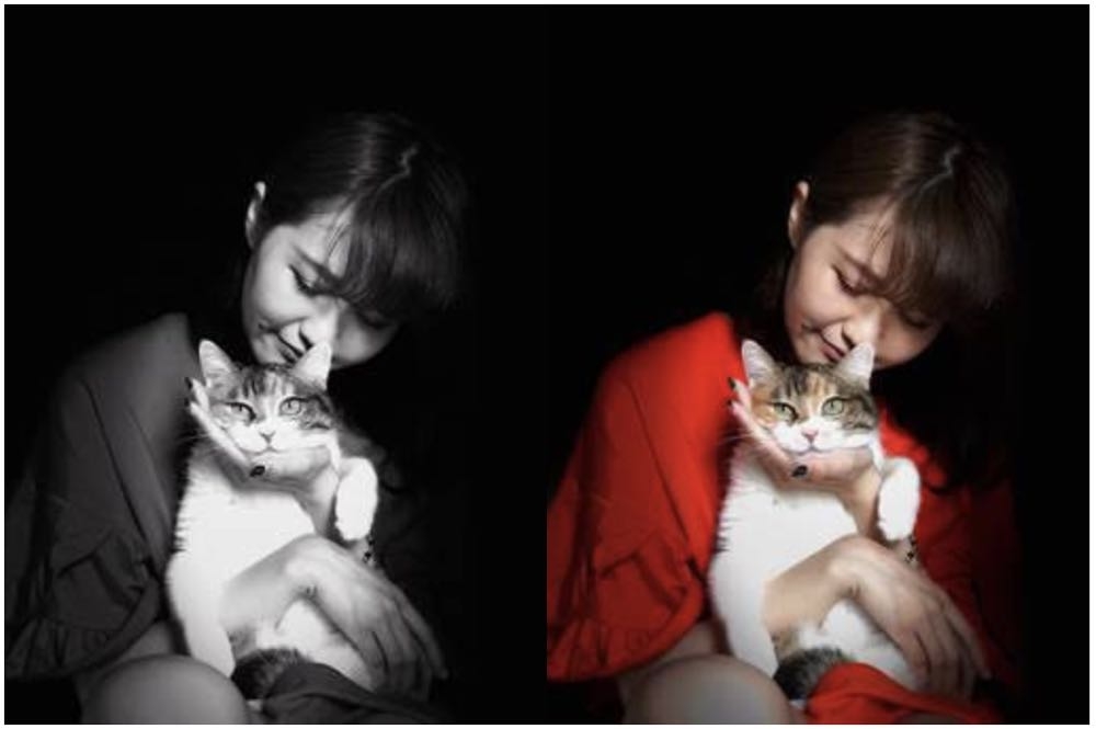 – 舞台燈光: 拍攝主體的面孔在深黑色的背景下以聚光照明。