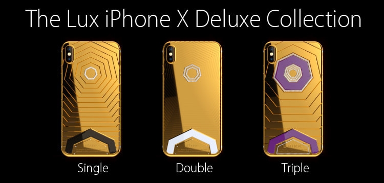根據 BRIKK 官網的介紹,極奢華 iPhone X 將僅提供 256GB 版本,加上 24K 黃金、18K 玫瑰金、950 白金等貴重金屬材質,有著在背後勾勒線條設計、整個背蓋換成貴重金屬、甚至還有鑲鑽石版本!