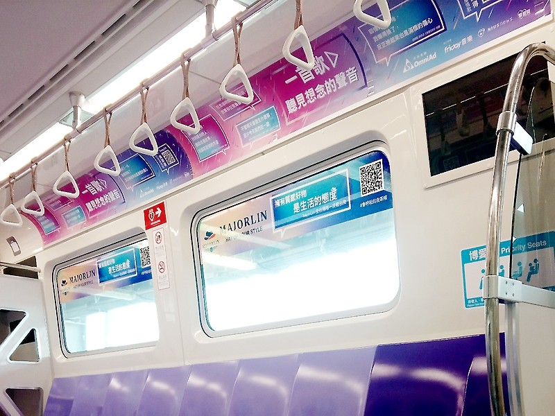 從世大運泳池、Red Bull賽車道、兩廳院包廂,到文青味爆棚的思念專車,捷運車廂內的創意表現愈發精彩,不僅是近來拍照、打卡的熱門景點,更是各品牌主虎視眈眈的絕佳宣傳利器,以這次合和集團主導的「思念專車」為例,就吸引了朵芮藥妝、美味星棒棒糖、苗喆林、妞新聞、愛逛街與friDay音樂等六大品牌齊聚,企圖在低頭世代中,運用家外廣告的優勢創造「抬頭經濟」!