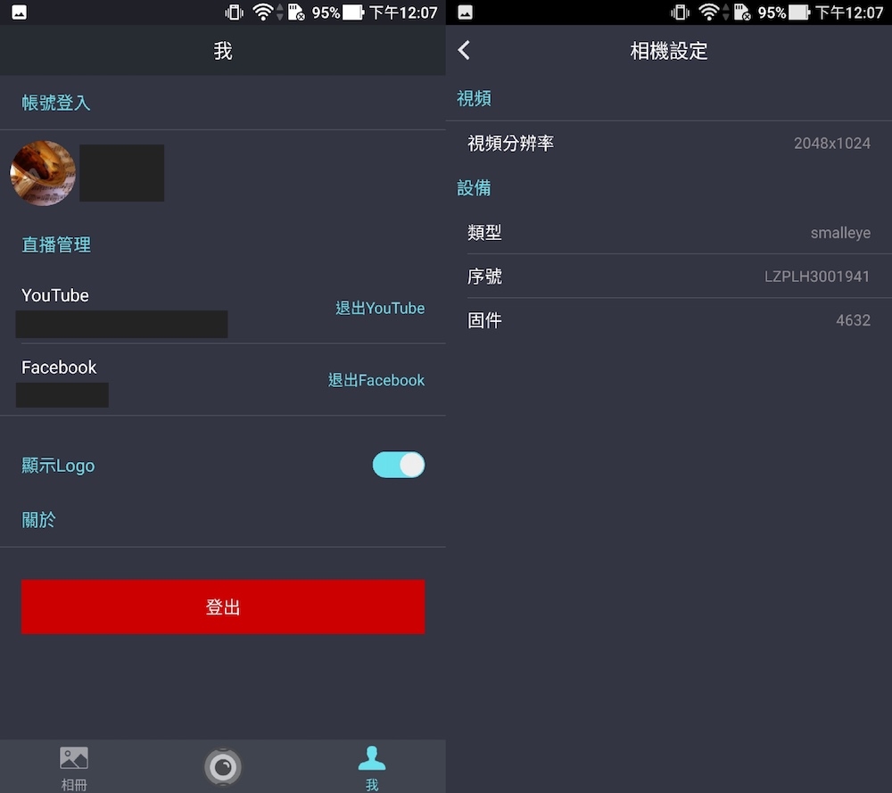 要進行 360 全景直播前,必須到 App 設定功能中的帳號登入與直播管理,登入自己的 YouTube 或 Facebook 帳號,帳號成功登入後,就可以透過 ASUS 360 Camera 與專用的 App,來進行 360 度全景直播,與線上朋友分享旅遊、各景點的實景畫面。