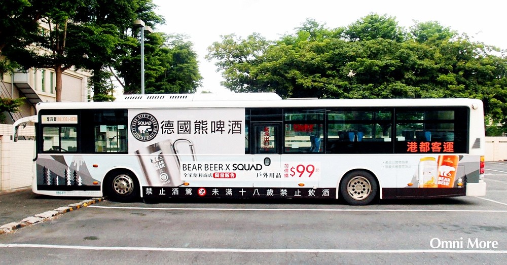 來自德國知名啤酒廠 HARBOE 旗下品牌之一的「Bear Beer德國熊啤酒」,以天然啤酒花與麥芽,釀造出讓丹麥皇室指定使用的殊榮。為了讓所有台灣民眾認識來自德國的好滋味,品牌主運用流動性大、訴求對象最廣泛的公車廣告,一舉滲透台北、台中、高雄各處角落,無論是主要幹道或近郊小路,不放過任何宣傳、曝光的可能!再搭上對啤酒需求最熱烈的炎夏與中秋節,一個月內不間斷重複曝光,在短時間內引爆興趣與好感度,瞬間沁涼全台灣!