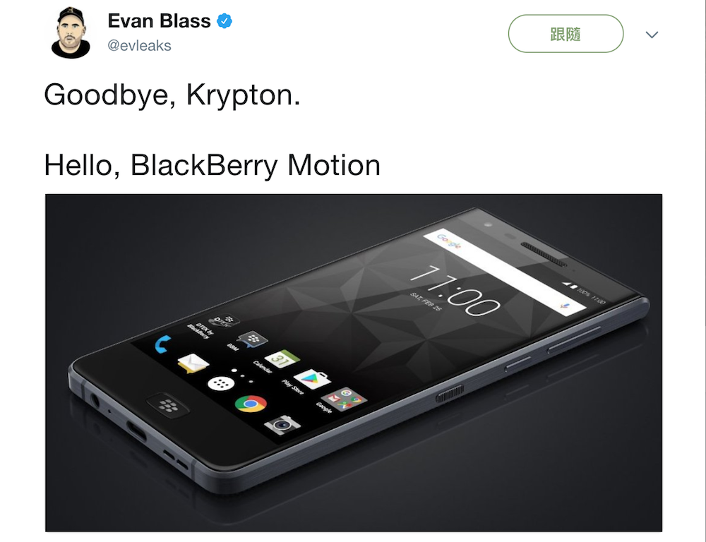 根據知名爆料大神 @evleaks 的貼文指出,TCL 最近打算推出一款掛上 BlackBerry 品牌的 Android 智慧型手機,且有可能正式命名為 Motion,這款手機除了取消黑莓傳統的 QWERTY 實體鍵盤之外,還將導入防塵防水功能,甚至有可能內建 BlackBerry 自家的語音助理系統,協助用戶查詢或是操作手機中的任何功能。
