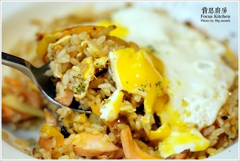 ▼將蛋黃戳破後稍微攪拌均勻即可享用!吃起來不僅鹹香又美味,粒粒分明的口感搭配鮭魚的香氣、荷包蛋的軟嫩,讓人更是一口接一口停不下來!