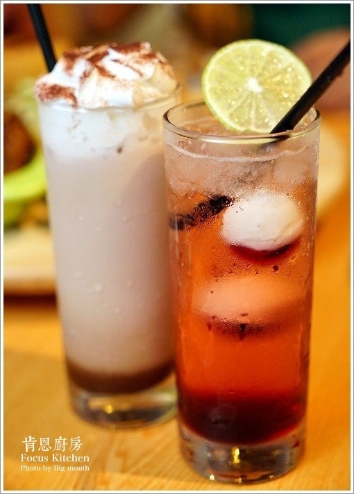 ▼巧克力歐蕾(130元)、紅色珊瑚礁(110元),飲品都不會過於甜膩,搭配餐點頗為剛好!其中紅色珊瑚礁裡頭還可以看見兩顆眼球,原來是店家為了迎接萬聖節特地放進去的,一整個好有感覺啊!大家可不要嚇壞了XD