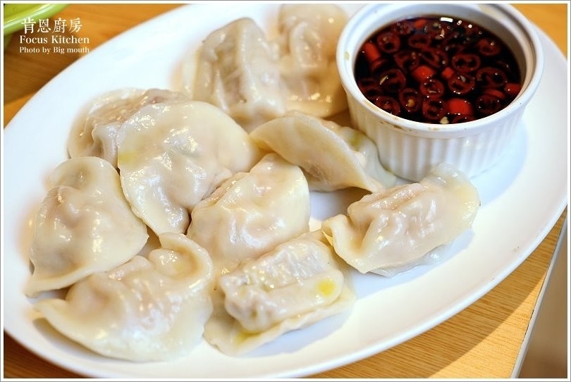 ▼竟然還有水餃可供選擇,不過僅限外帶!他們家的是手工包製的水餃,一共有高麗菜、韭菜兩種口味可供選擇~我們選擇的是韭菜風味!