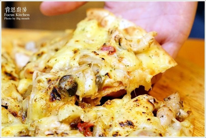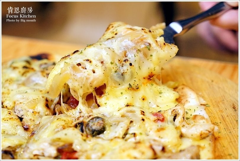 ▼話說他們家的餅皮大概是大口看過數一數二薄脆的了!上頭的配料多到快掉下來,尤其是滿到牽絲的起司更是超邪惡!
