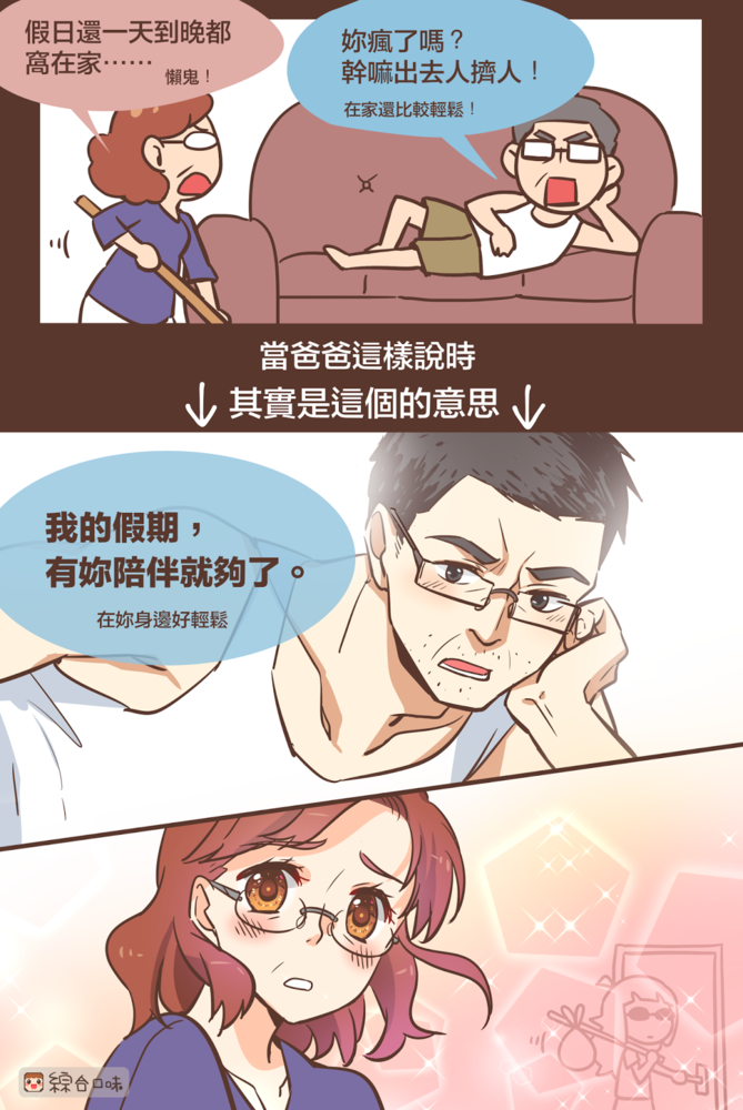 綜合口味 2017/10/20瀏覽: views 假日的懶惰是有理由的❤ 我才剛回來放連假,就逼我離開這樣對嗎???? 不好意思喔打擾到你們單獨相處了啊~~~~~(淚奔) 媽媽表示:反正肚子餓就會回來了 (好啦其實女兒看到爸媽放閃很開心❤) 更多浪漫無極限的>>>情話系列 看更多爸爸傲嬌>>>莓爸 原文刊登於:http://blog.mixflavor.com/2017/10/holiday.htm Related Items好有趣 好有趣 2017/10/20瀏覽: views 綜合口味 喜歡以輕鬆治癒的畫風,將日常中的酸甜苦辣化為可愛有趣的故事!秉持著「世間沒有萌不起來的東西」信念,持續創作中! Related Items好有趣 next page