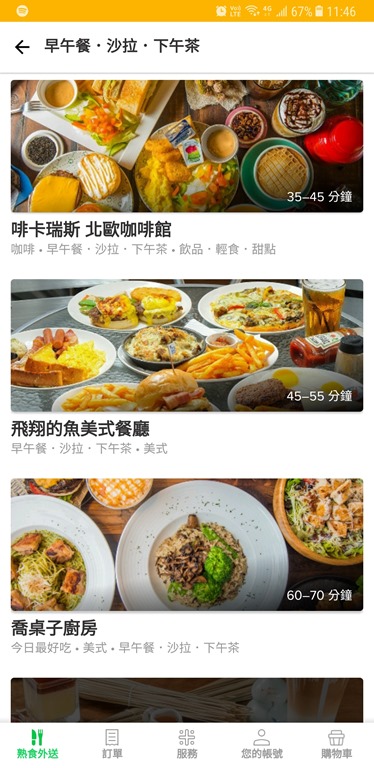 趁著連假中午不知道要吃什麼,又懶得出門時,實測了一下這個 APP,看看究竟服務品質如何。首先打開 APP 後,就可以選擇可外送到你家的餐廳,這部分應該是依照你所在地決定的,在每個餐廳旁都有寫上從訂購到送抵指定地址的時間,如果你無法等,就不要選。