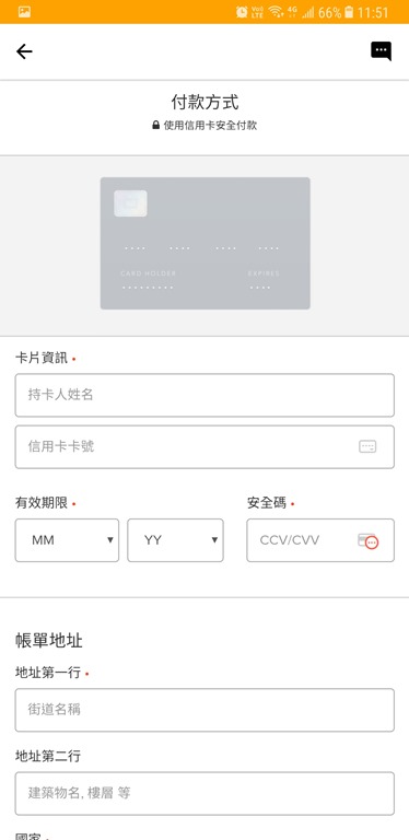 首次使用要填入信用卡資料,之後就不用填那麼多了。