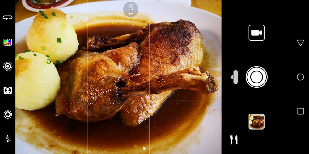 辨識速度其實相當快,像是在吃晚餐時拍照分享,就直接秀出刀叉的圖示來告訴你目前拍攝場景轉為食物模式。