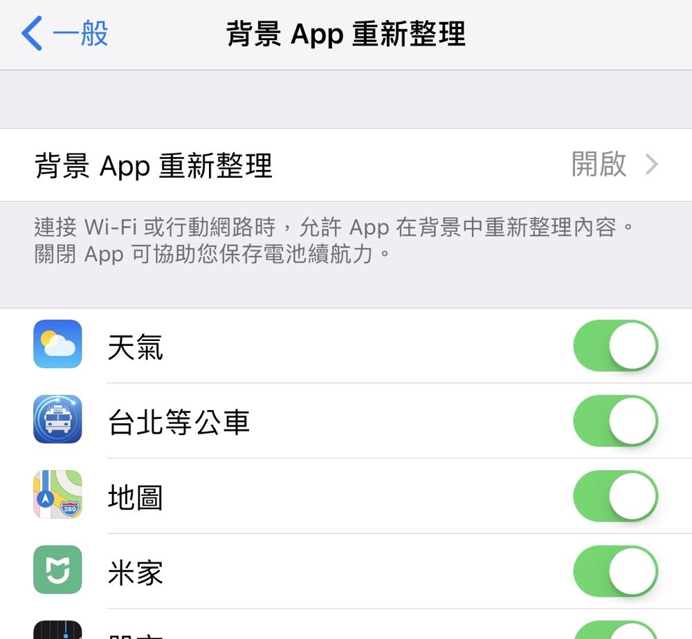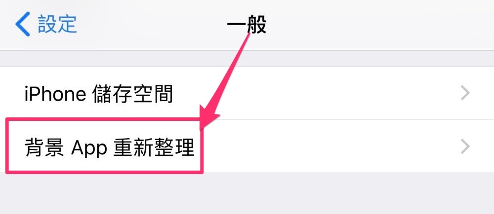 位置:「設定」>>>「一般」>>>「背景 App 重新整理」。