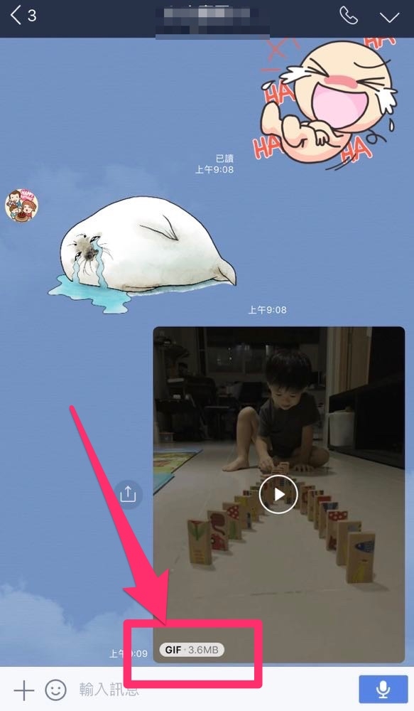 這時只要將其傳送給朋友後,再自己儲存到相簿中,這時剛剛的 LIVE Photo 就成功的以 GIF 檔方式存在我們的相簿裡了唷!