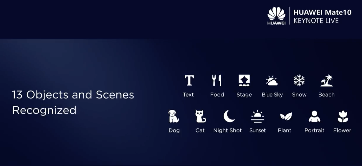 這次 Mate 10 系列都使用了 Kirin 970 處理器,除了省電、速度更快以外,最大的特色就是在拍照上加入了 A.I.! 根據發表會中的解說,能夠透過機器學習來辨識拍照物體,提升尋找速度、拍照數值調整,讓用戶在拍照的時候更加輕鬆地拍出最適合拍照對象的快門、光線等,來得到滿意的拍照成像!