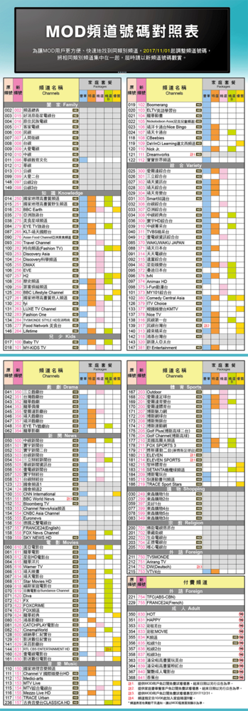 不知道經歷之前 MOD 頻道大縮水風波後還有多少人繼續支持著呢?!那麼在 11 月 1 日起 MOD 就要為各用戶來個頻道重新洗牌大整理了唷!