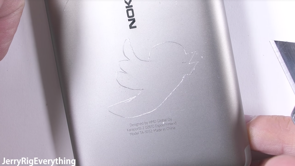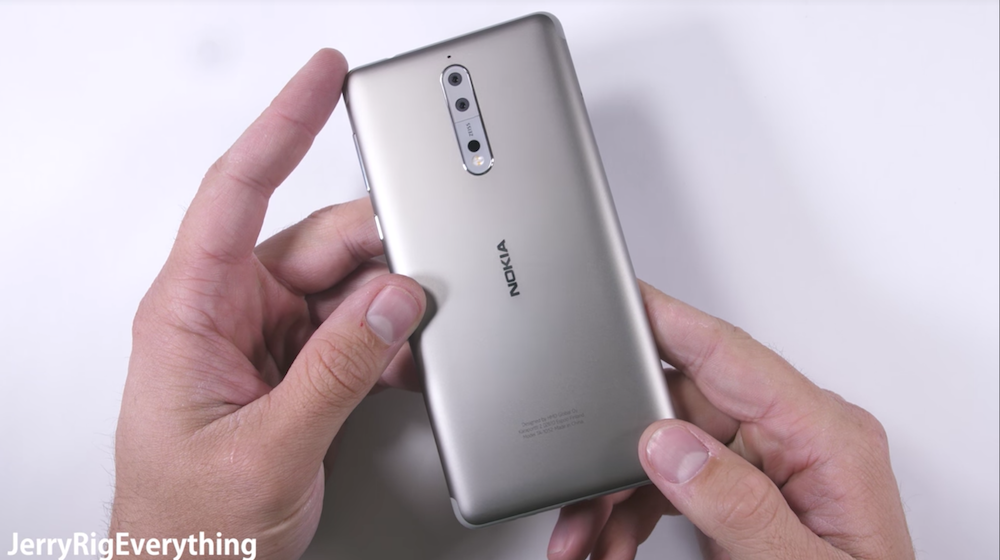 根據國外知名 YouTube 頻道 JerryRigEverything 的暴力測試影片來看,除了使用美工刀以及來測試最基本的抗刮能力之外,還加入了打火機考螢幕的耐熱測試、徒手折彎的金屬延展性測試。而經過上述這些嚴苛的測試之後,雖然外表已有不少的傷痕,但採用 6000 系列鋁合金打造的 Nokia 8,還是通過一連串的考驗,成功的存活下來,也驗證了 Nokia 手機堅固、耐用的特性一如往常一樣。