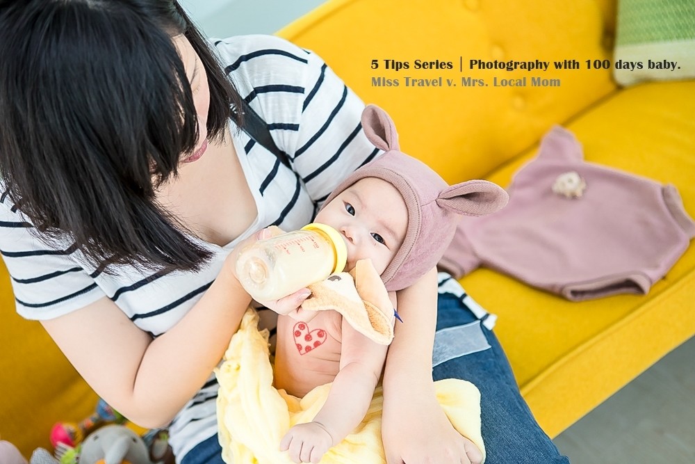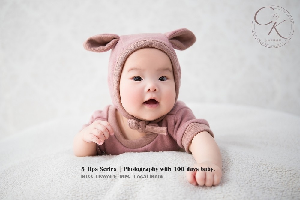 建議爸媽鎖定的法則就是「小人睡醒喝完奶」的這段清醒時間,百日寶寶大約已經可以撐到快2小時,因為我平常都有幫兔寶記錄作息的習慣,所以這次雖然理論上有疊到兔寶平常的午睡時間,但在適度的微調之下也能不哭不鬧的配合我們(這就是我說選下午時間的好處啊),如果還抓不到作息的爸媽也莫驚慌,只要拍攝前想辦法哄睡小人,起來喝飽拍嗝之後立刻開工,加上找到快狠準的專業攝影團隊,真的不用太擔心。