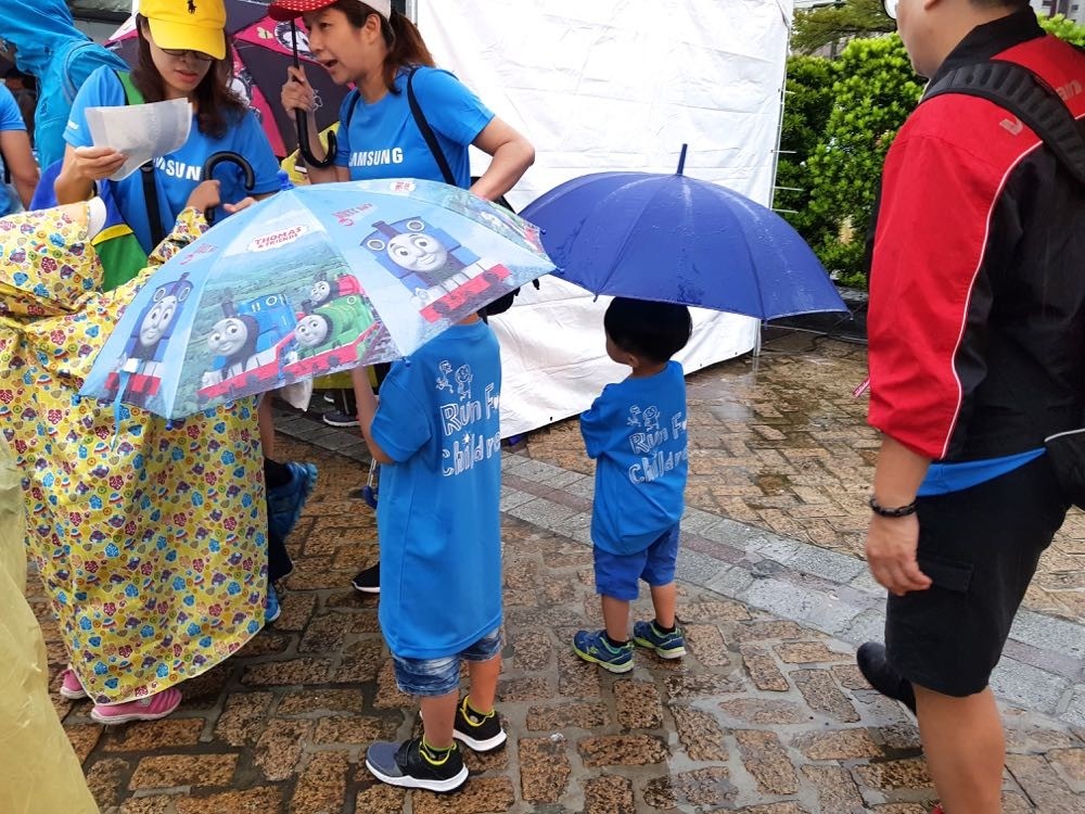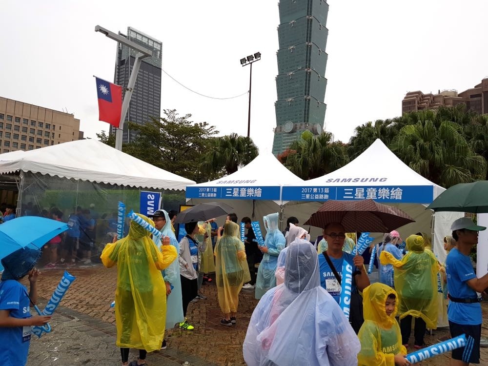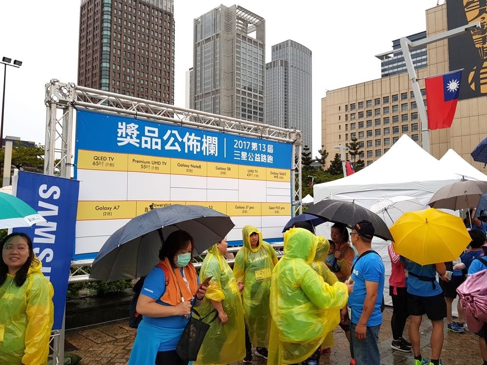 此次三星公益路跑雖然遇上下雨天,但現場可以看到除了大人、小孩們撐著傘、穿著雨衣的熱情參與以外,周圍還有一系列的摸彩、三星最新產品體驗區,更依照不同情境設置「星美好藝樹」互動藝廊、包括「希望教室」、「原民計畫」、「智慧教室」、「智慧教室 in Hospital」四區展示,讓有不同需求面向的朋友,都能感受到這份讓愛傳出去的美好。