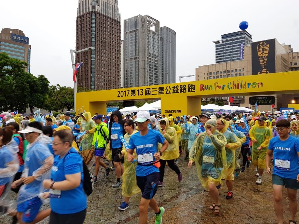 台灣三星公益路跑至今已經邁入第 13 年,姑且不論「路跑」活動在台灣有多受到歡迎,讓此次公益路跑活動在報名時便收到許多踴躍地報名,竟在今天這一早天都還沒完全亮、天空更是間歇下著大小雨不斷的台北市政府前廣場,湧入了相當多的熱情公益朋友,一同「Run For Children」!