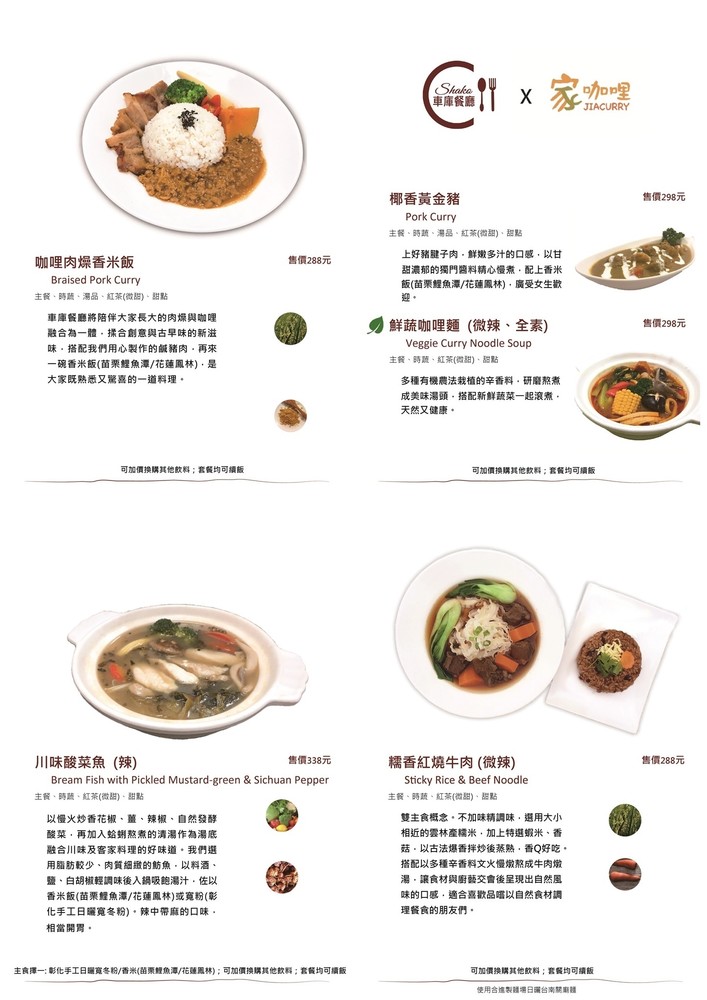 套餐包含小菜、甜點、紅茶(微甜),可加價換購其他飲品