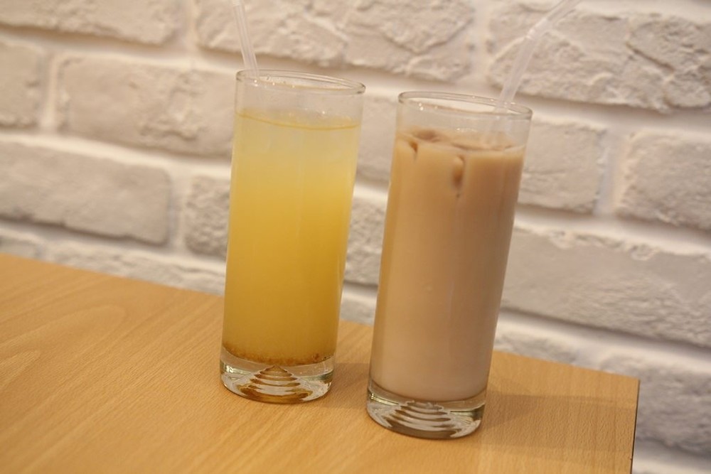 檸檬鮮桔汁(冰) 70元 / 阿薩姆鮮奶茶(冰) 70元