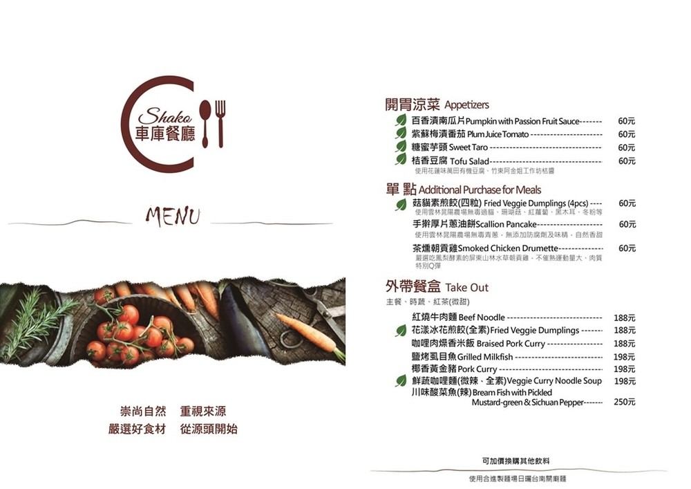 嚴選在地小農食材,做出一道道創意又健康的料理