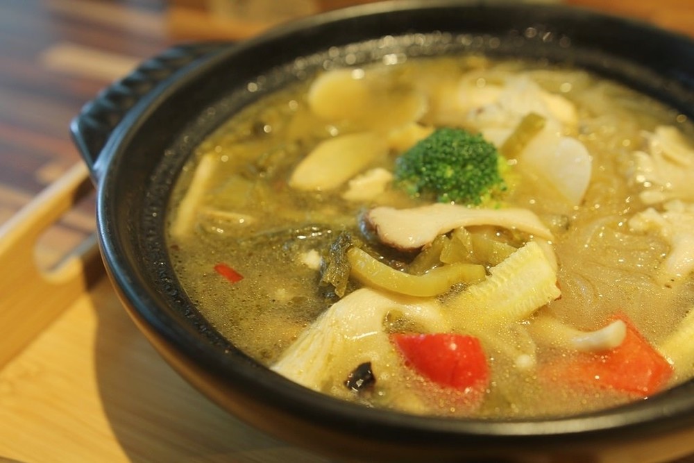 喝起來微酸微辣,完全不油膩,融合川味及客家料理的味道