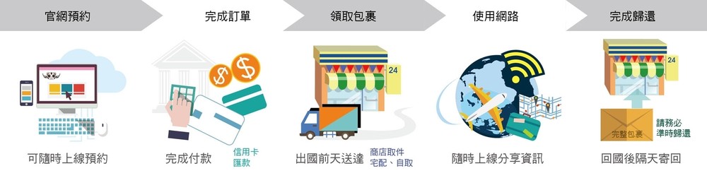 建議在出國7天之前完成分享器預約,如遇到櫻花或是楓葉超級旺季,最好再提早,一般預約,出國前一天會將機器寄送至用戶指定地址或是便利商店,回國後隔天寄回歸還。