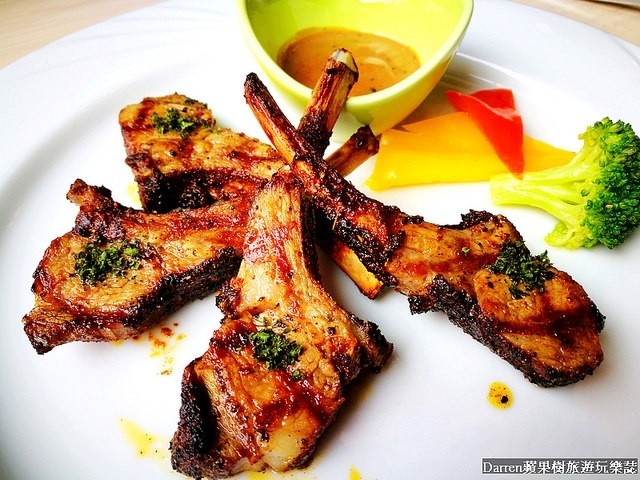 在Mr. Tom頂級牛排館如果你不吃牛的話還有豬羊和海鮮可以選擇,羊排使用六個月的小羔羊肉