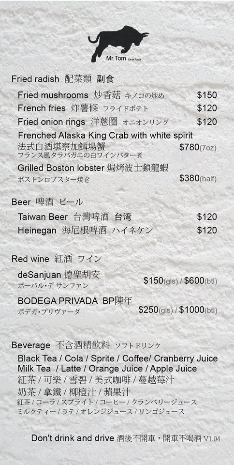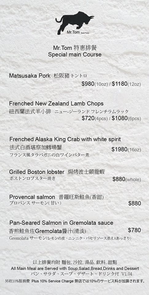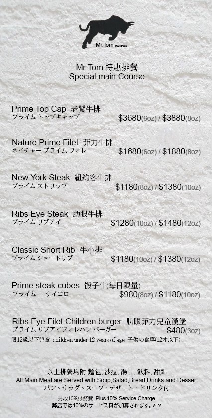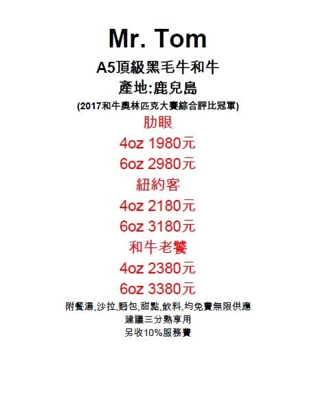 Mr. Tom頂級牛排店MENU菜單,我放在文末因為今天來的目的就是要來吃日本黑毛和牛排