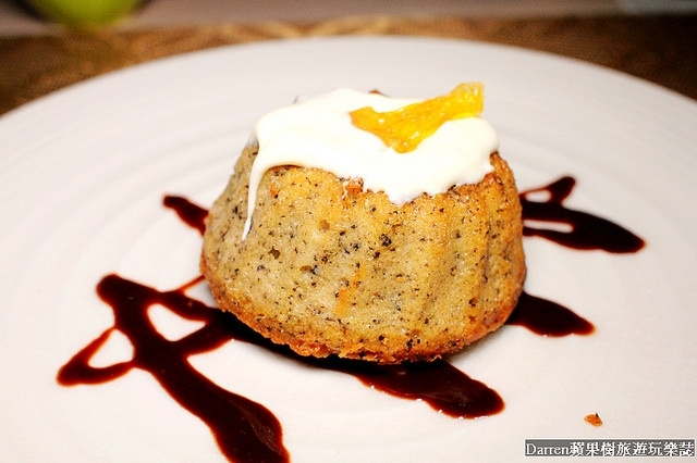 餐後甜點是咕咕洛夫源自奧地利是歐洲節慶或祭典時會用到的傳統點心,外型有點類似皇冠