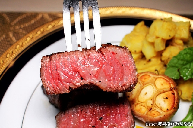 拍完照立馬切開日本和牛同樣是三分熟不會出血最好吃在切的同時想到能在桃園能吃到日本和牛真的是太幸福了XDD