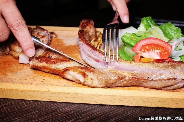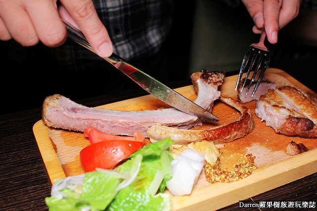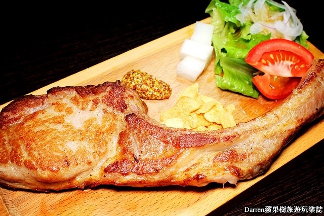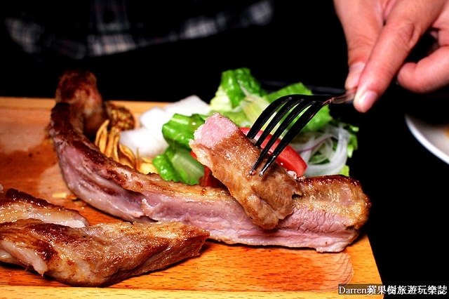戰斧豬排可以同時品嚐骨邊肉和里肌肉兩種不同口感,這就好比丁骨牛排吃的到菲力和紐約客一樣充滿爽度