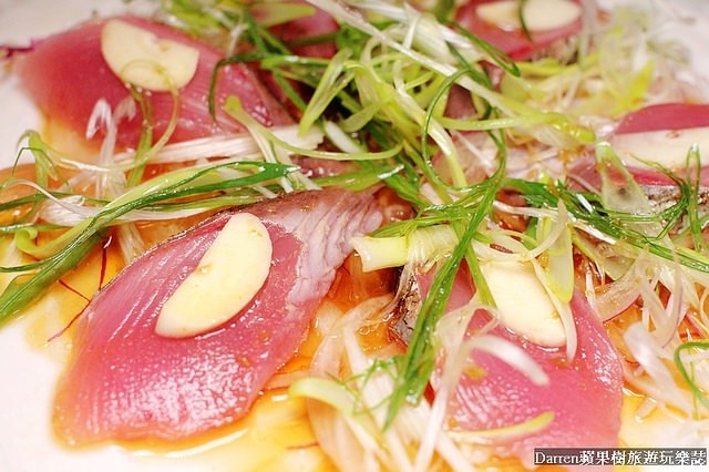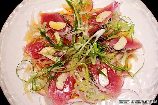 Aiueo餐廳走和洋料理路線,在料理上少不了生魚片,鰹魚會先撒過鹽水冰陣之後在魚皮表面炙燒