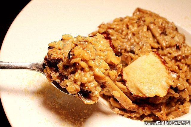 主餐有燉飯和義大利麵可以選擇,來分享的這到牛肝蕈野菇燉飯,這裡的燉飯使用了台灣米而非義大利長米