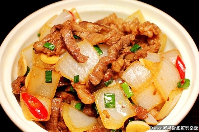 看到這道料理一上桌就想點碗白飯來配也非常下酒,牛筋膜越嚼越香,搭配洋蔥和大蒜一起入口微辣甜脆