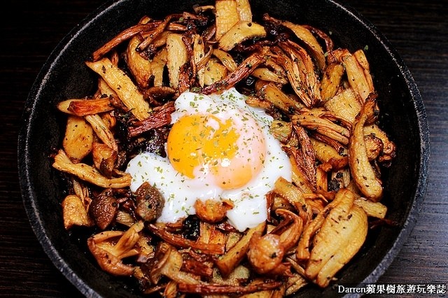 使用來自法國的松露醬再搭配柳松菇、精靈菇、杏鮑菇、鴻喜菇等,中間再加入一顆半熟溫泉蛋