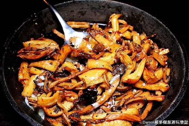 透過攪拌讓蛋液充滿沾在野菇上面,炸過的菇類微持脆度不油膩,濃郁松露香氣在咀嚼中越來越香非常好吃