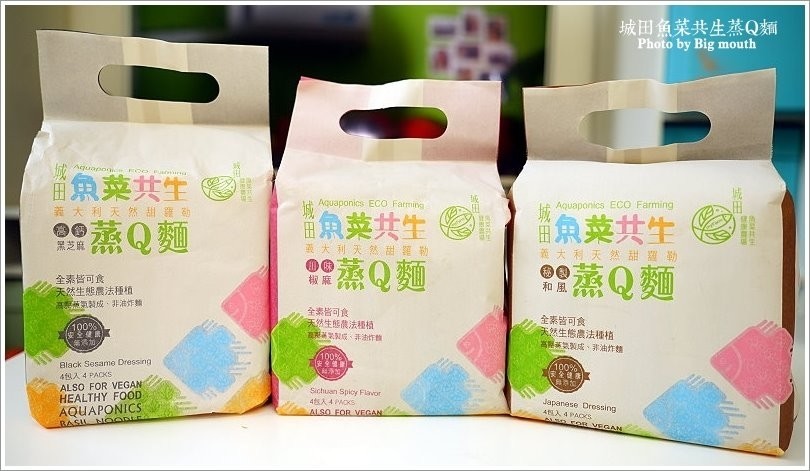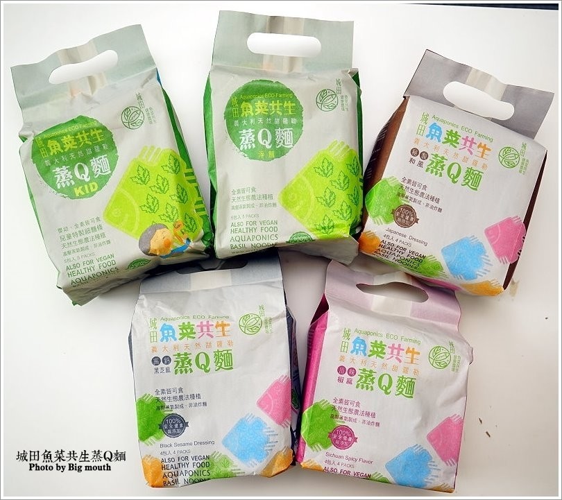 不知道大家是否跟大口一樣,在家裡很常簡單煮個麵條來吃!不過好吃的麵條不少,但要兼具健康與美味的麵條可就不多見了!這次大口要介紹的這款「城田魚菜共生蒸Q麵」,他們家不僅是國內第一間採用魚菜共生的農法技術,而且種植出來的義大利甜羅勒搭配進口非基改麵粉,經由高壓蒸氣後烘乾製成的麵條不僅香Q滑順,且沒有添加任何的色素、防腐劑、農藥及化肥,讓人吃起來更為安心!除了完全無調味的淨麵之外,也有專為兒童設計的較細麵條,此外也有推出高鈣黑芝麻、川味椒麻、秘製和風等三種不同口味,不管是清爽順口、香滑濃郁還是香醇麻辣的風味通通有,讓你在家也能簡單享用不一樣的健康美味!