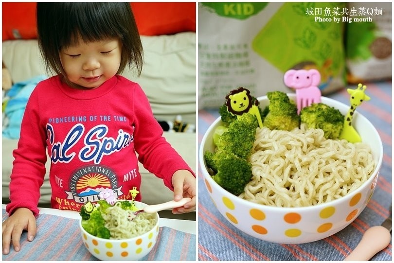 ▼一旁還會搭配花椰菜,簡單加一點沙茶醬調味即可!大口還特別幫小口愛放置超多動物造型叉子,營造出一種彷彿在動物園跟動物們一起用餐的感覺,果然大大贏得小口愛的歡心,她吃得開心我們也能更安心!