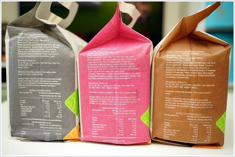 ▼這兩款都是淨麵,也就是沒有搭配調味料的麵條,採用的是無毒優質義大利甜羅勒加上進口非基改麵粉,並以高壓蒸氣後烘乾製成,非一般使用的油炸麵,享用起來對身體也較無負擔,差別只在於是大人享用跟專為兒童所設計的細麵!