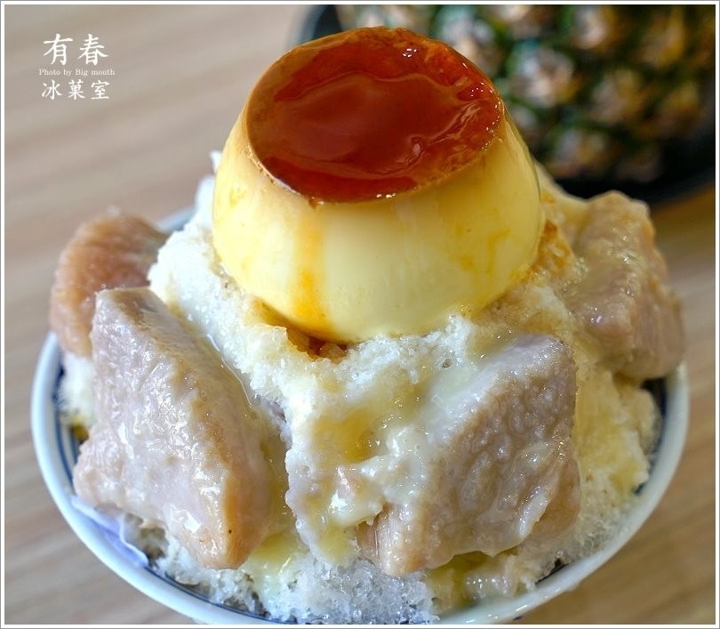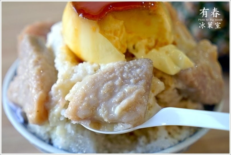 ▼綿密細緻、香滑微甜的芋頭更是超好吃,搭配煉乳、剉冰更是一絕,不僅清涼爽口又有濃濃的芋頭香甜,加上復古的古早味布丁更增添滑嫩香甜的口感,一口吃下大大滿足,來這必點啊!