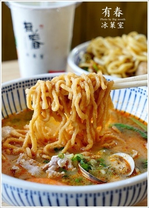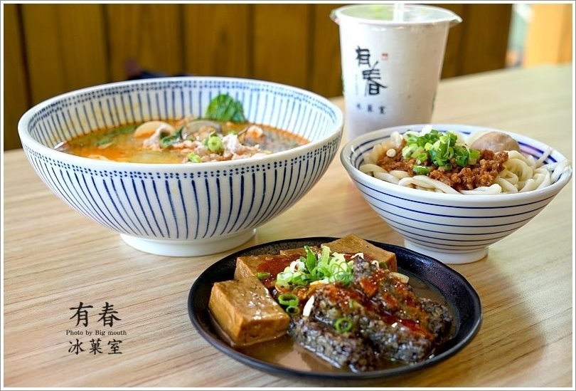 「有春冰菓室」不僅復古又創新,還帶有濃濃的台灣味與喜氣,讓人來到這裡都能感受到輕鬆自在的氛圍!餐點選擇不少,除了霸氣又充滿果香的整顆旺來汁之外,芋頭布丁牛奶冰也是必點,吃起來不僅香甜綿密又細緻,加上焦糖香氣十足的軟嫩布丁更是讓人一吃就愛上!另外鹹食的表現也不錯,像是阿嬤麻辣鍋燒麵就是大口的愛,不僅可以吃到吸附滿滿湯頭精華的鍋燒意麵,搭配香麻微辣的湯頭更是讓人回味無窮!其他餐點也都有不錯的水準,來到這裡不管是吃冰吃熱、吃飽吃巧都很適合,不管是來科博館玩耍或是特地前來的朋友都很值得一試,包準也會喜歡上他們家的創意與餐點!