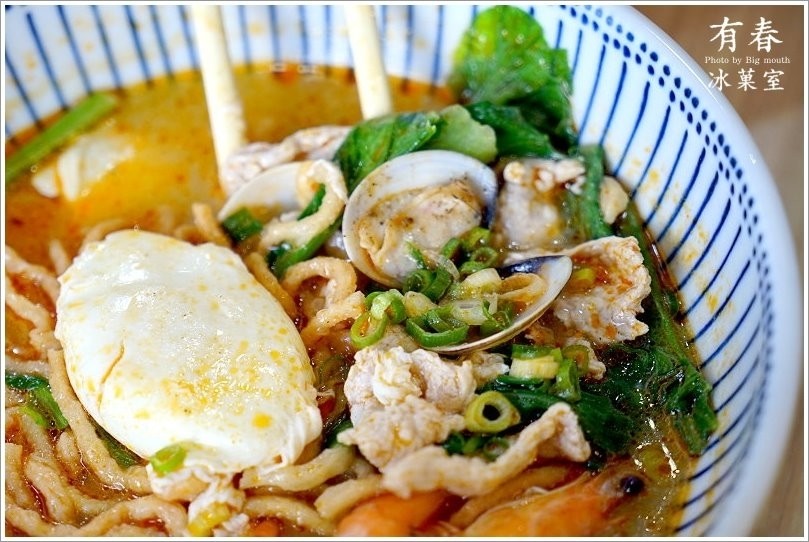 ▼裡頭的配料還不少,像是蝦子、蛤蜊、肉片、蔬菜、嫩蛋等,吃起來豐富又多元!