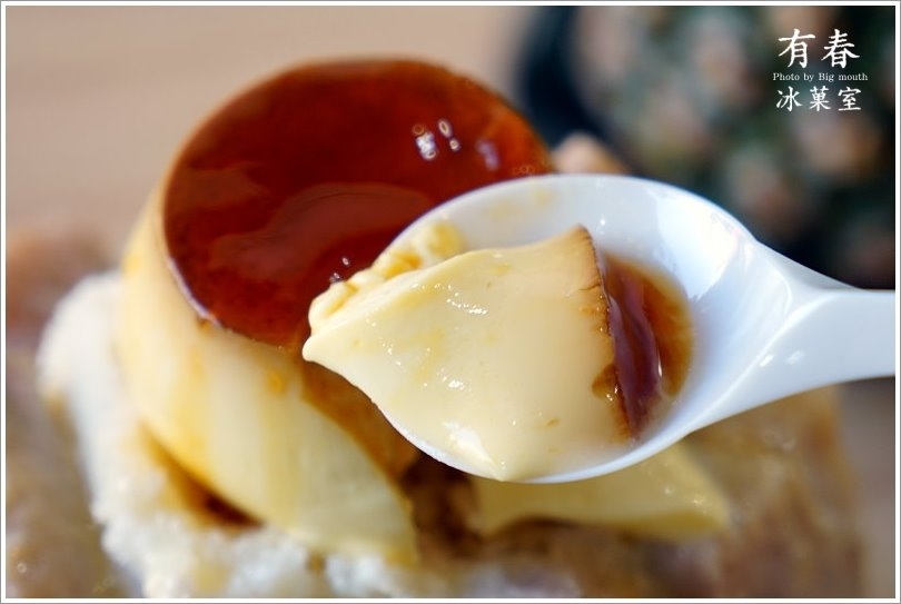 ▼滑嫩香甜帶點焦糖香氣的古早味布丁吃起來微甜不膩,單吃就很厲害,搭配剉冰更是絕配!