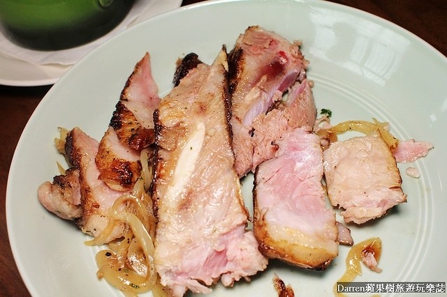 帶有點粉紅色澤的熟度最能吃到究好豬的品質,究好豬的口感柔嫩不會乾柴,不論是口感以及風味完全可以PK牛排