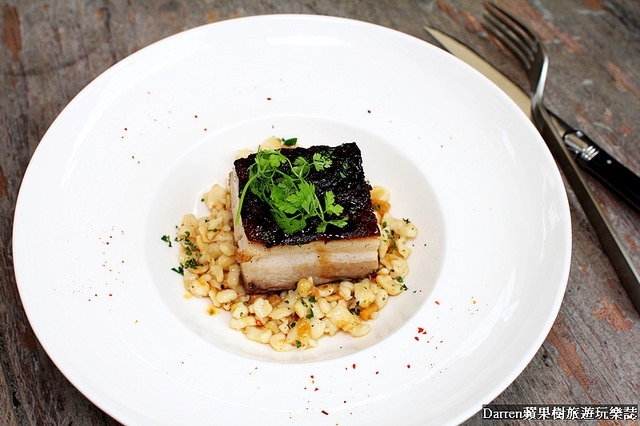 以簡單的料理手法把加州風新派料理呈現地淋漓盡致,脆皮燒肉跟麵疙瘩分開吃表現很棒一起又不會突兀
