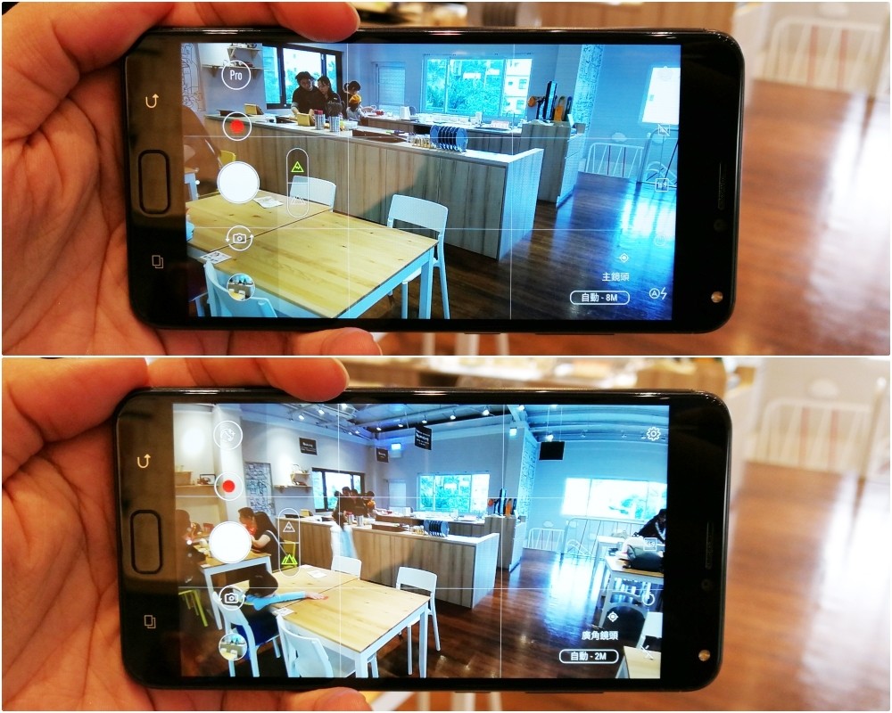 1300 萬像素主鏡頭搭載 F2.0 大光圈已經可以拍得很不錯了,結合 120° 廣角鏡頭則可以把許多情境拍得更好,像是團體照或是風景照,無論拍照或錄影都有稱職的表現。