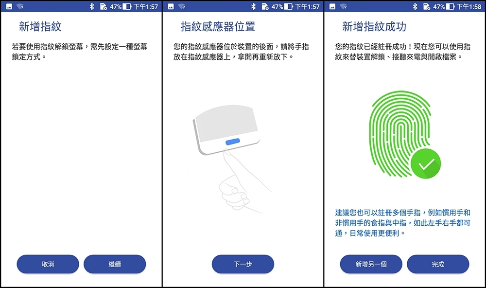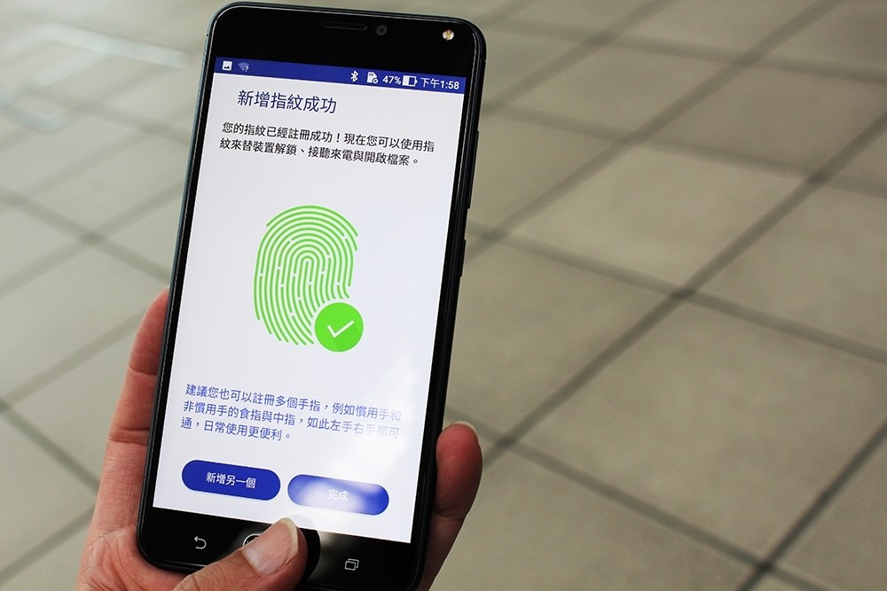 很簡單就註冊好一枚指紋了,拿來替裝置解鎖、接電話、開檔案都 OK 唷!
