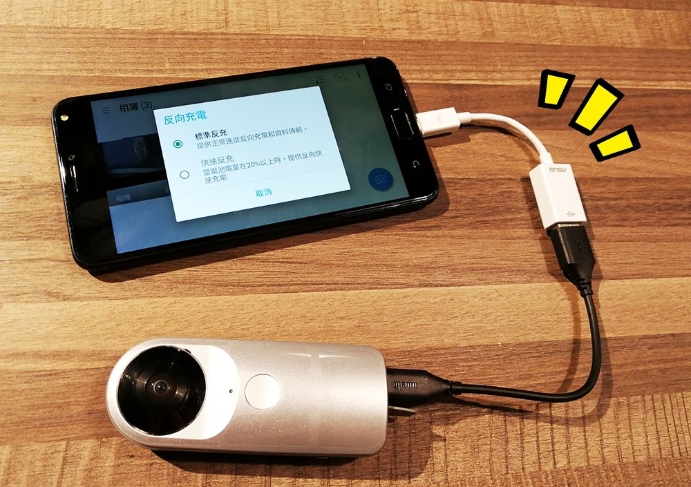 話說為什麼要附一條 OTG 線呢?因為 ZenFone 4 Max 搭載 5000mAh 大容量電池,透過這條線就能隨時隨地幫其他行動裝置充電,在外面不知道可以救多少人的燃眉之急!最近跑活動才幫我充了臨時突然要用的隨身 360 小相機,超感謝及時救援的啊!