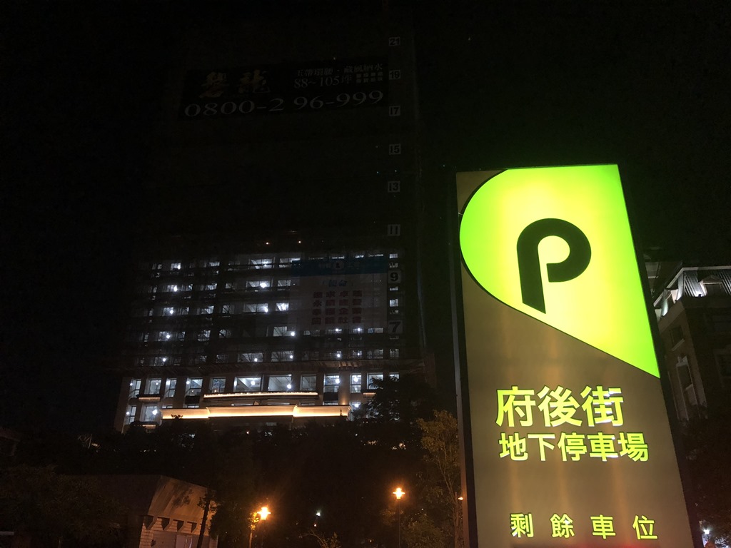 停車場招牌與興建中大樓:在 ZenFone 4 Pro 的鏡頭下,停車場招牌亮度較暗,顯現出原本的鮮綠色,後面大樓的高樓層暗處可清楚看到建案名稱與電話;而 iPhone X 拍攝後雖然停車場招牌較亮,但後面建築物的招牌卻消失了,當然也看不到任何細節了。